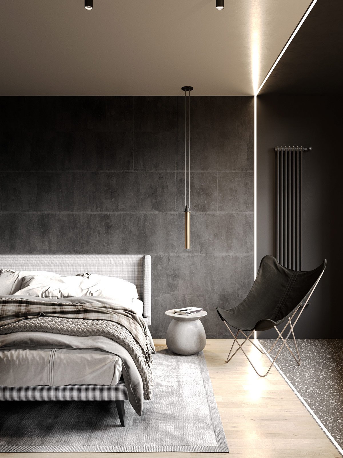 MŪSDIENĪGS INTERJERA DIZAINS AR TUMŠIEM ELEMENTIEM